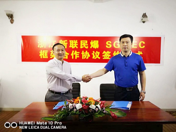 时间8月30日,双方签订了合作意向协议。新联民爆公司董事长汤浩江提出了“顶层设计、统一目标、自主经营、发挥资源”的合作原则,明确了双方合作的目标与方向,他要求双方在原材料采购、生产销售及爆破服务等方面,利用各自的优势,进行全面的合作,积极推进项目落地,努力打造长远发展的合作共赢的伙伴关系。